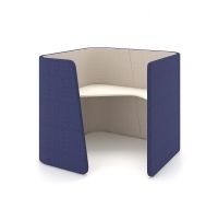 Рабочее пространство предназначено для создания коворкингов, оснащения гардеробных и вестибюлей. Конструкция занимает 2,27 кв.м. Составляется из вертикальных перегородок и угловой столешницы между ними (толщина 25 мм). Стеновые панели поглощают шум. Обивка выдерживает не менее 20000 циклов истирания.