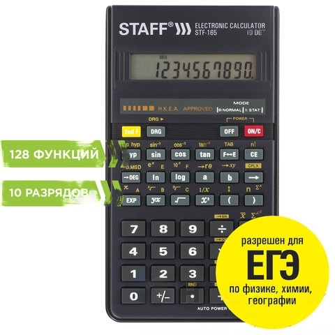 Калькулятор инженерный STAFF STF-165 (143х78 мм), 128 функций, 10 разрядов, 250122