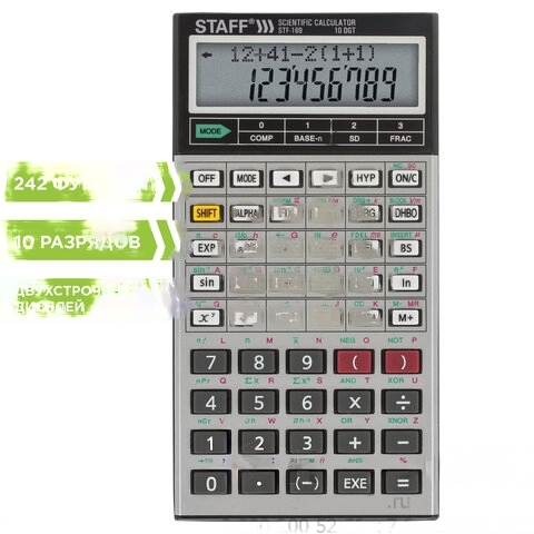 Калькулятор инженерный двухстрочный STAFF STF-169 (143х78 мм), 242 функции, 10+2 разрядов, 250138