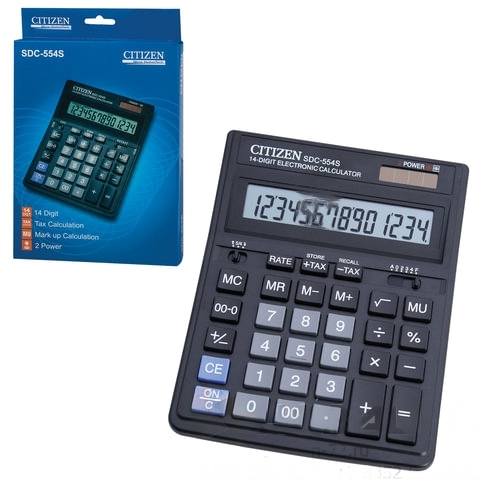Калькулятор настольный CITIZEN SDC-554S (199x153 мм), 14 разрядов, двойное питание