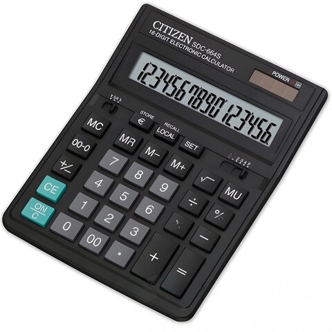 Калькулятор настольный CITIZEN SDC-664S (199x153 мм), 16 разрядов, двойное питание