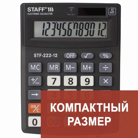 Калькулятор настольный STAFF PLUS STF-222, КОМПАКТНЫЙ (138x103 мм), 12 разрядов, двойное питание, 250420