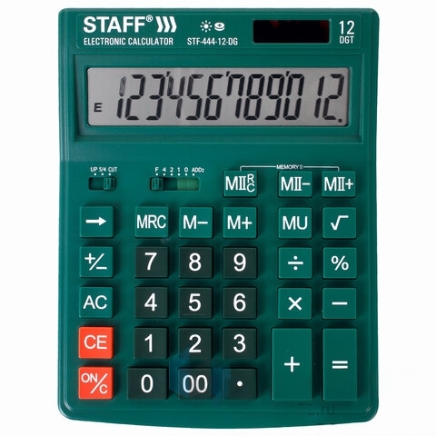 Калькулятор настольный STAFF STF-444-12-DG (199x153 мм), 12 разрядов, двойное питание, ЗЕЛЕНЫЙ, 250464