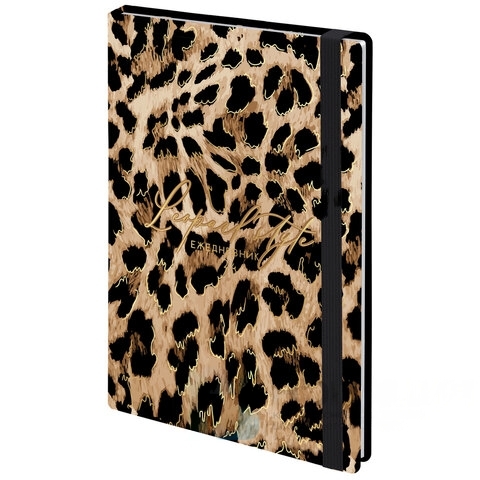 Ежедневник недатированный с резинкой А5 (145х215 мм), BRAUBERG, твердый, фольга, 128 л., "Leopard", 114561