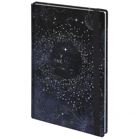Ежедневник недатированный с резинкой А5 (145х203 мм), BRAUBERG, твердый, фольга, 128 л., "Stars", 114566