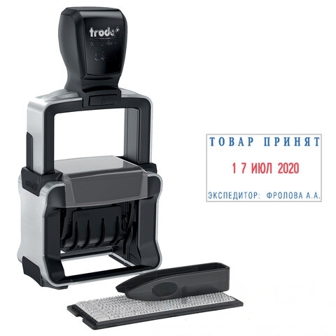 Датер самонаборный металлический, 2 строки+дата, оттиск 41х24 мм, сине-красный, TRODAT 5435, касса в комплекте, 53460