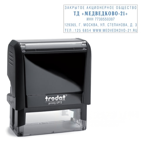 Оснастка для штампа, размер оттиска 58х22 мм, синий, TRODAT 4913 P4, подушка в комплекте, 52887