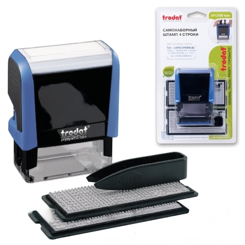 Штамп самонаборный 4-строчный, оттиск 47х18 мм, синий без рамки, TRODAT 4912P4/DB, КАССЫ В КОМПЛЕКТЕ, 4912/DB