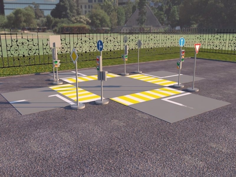 Модели дорожных знаков и светофоров с переключающимися сигналами расставляются на крупногабаритном макете перекрестка. Их легко можно переместить или разобрать, мобильность является большим преимуществом современного автогородка. Особенных навыков при монтаже не требуется. Все элементы изготовлены из качественных материалов, безопасных для здоровья человека.