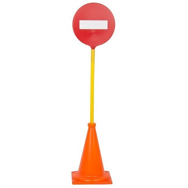 Универсальная стойка позволяет менять дорожные знаки во время рассказа о ПДД, тематических игр. Изделие включает в себя палку, втулку и конус на прямоугольном основании.
